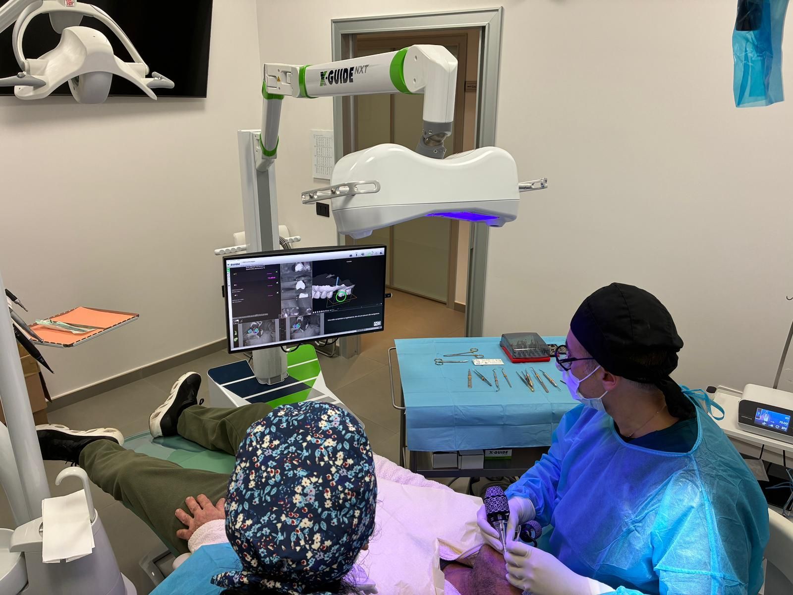 L'implantologia navigata è una tecnica chirurgica all'avanguardia che utilizza un sistema di telecamere e intelligenza artificiale per guidare il chirurgo in tempo reale durante il posizionamento degli impianti dentali, garantendo precisione millimetrica e massima sicurezza.